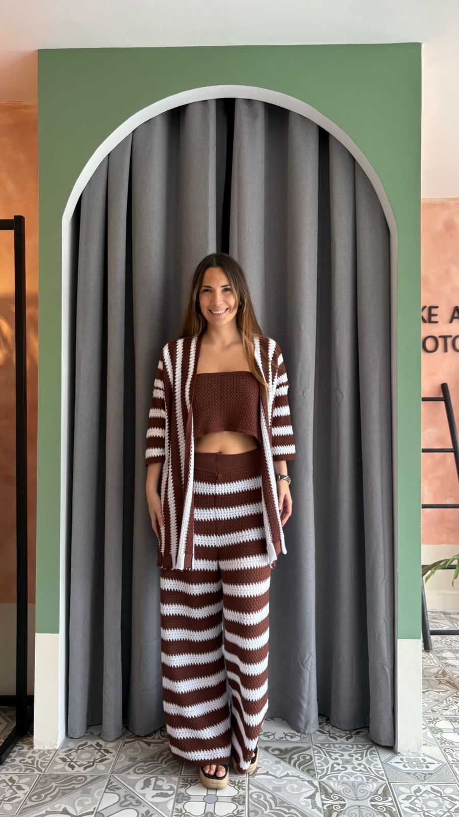 CONJUNTO 3 PIEZAS MARRON TEJIDO
